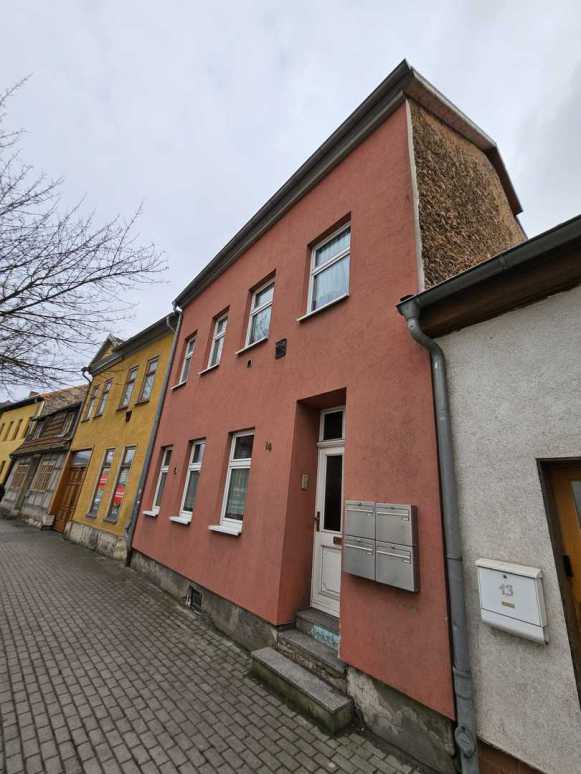 dem Eckgebäude. Das Haus ist unterkellert. Rückwärtig ist die Hoffläche gepflastert. Zu