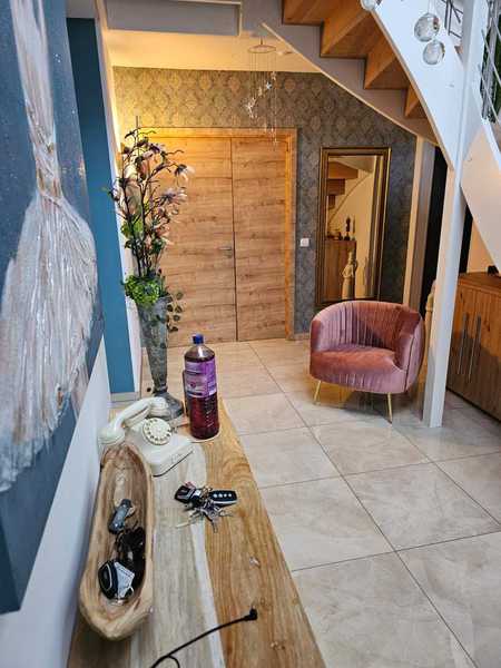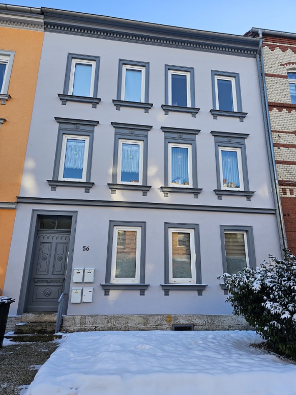 Es handelt sich um ein Haus in einer Reihenbebauung. Das Gebäude ist an zweiter Stelle, nach